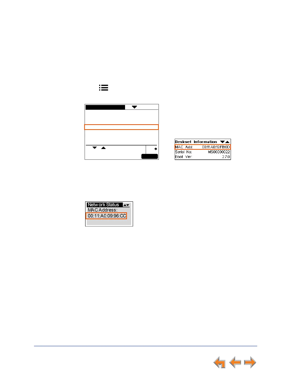 Press SELECT, DOWN, SELECT, and then press DOWN until MAC Address