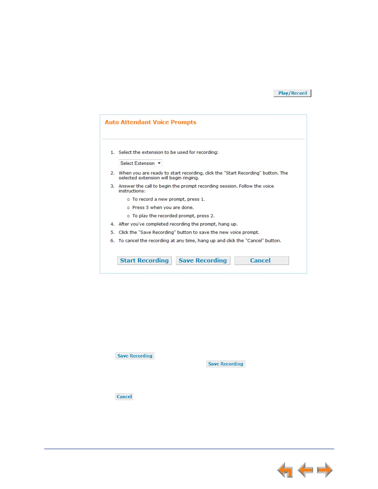 3. Follow the instructions on the web page to record the voice prompt.