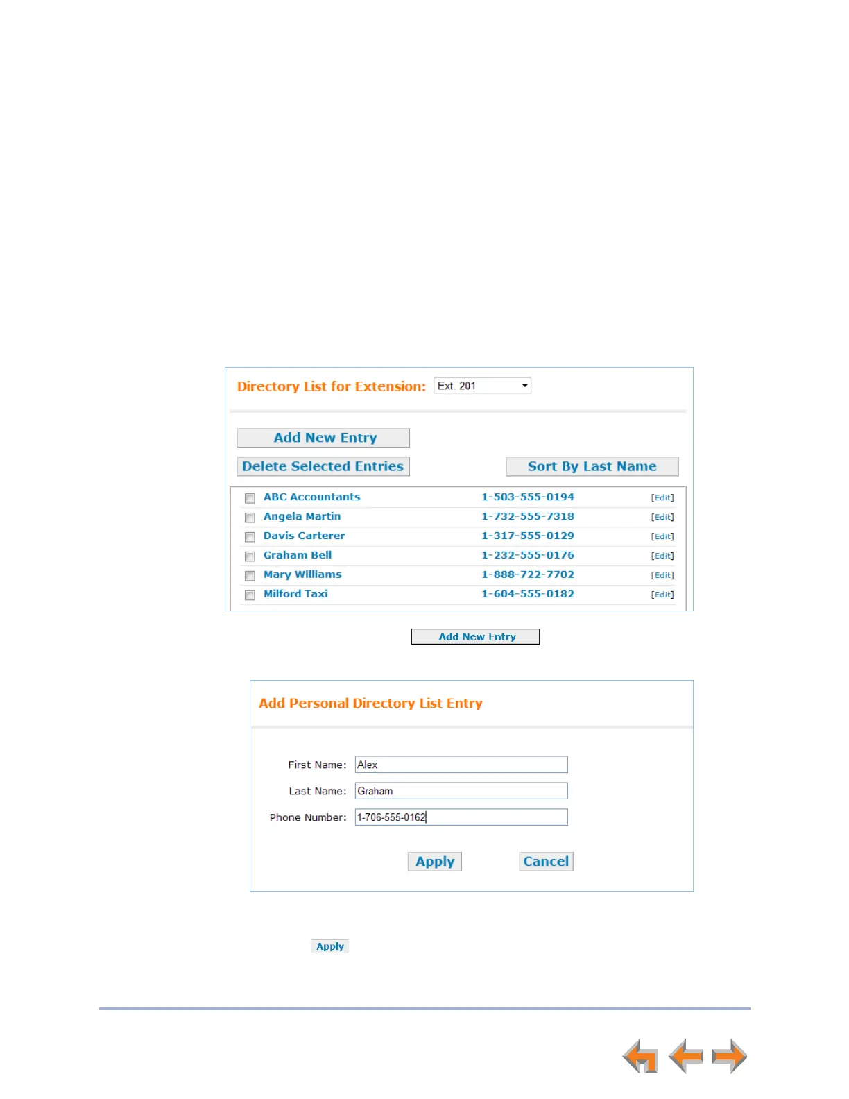 The Directory list appears. You can add, edit, delete, and sort the entries, as described