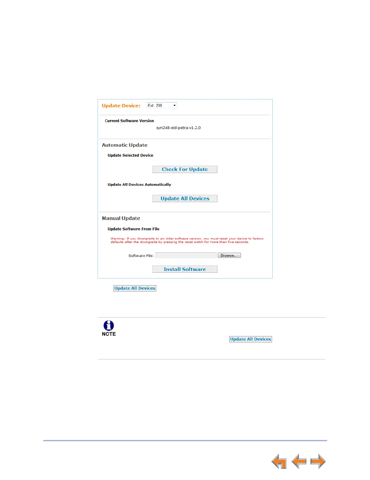 A caution appears to remind you that all devices will be restarted as each is updated.