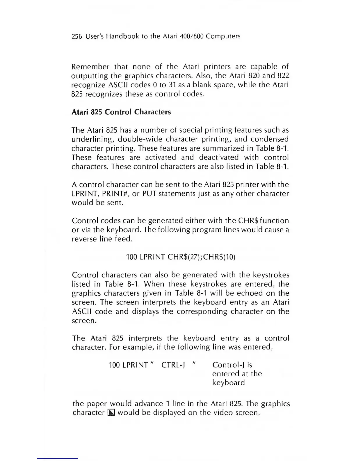 Atari 825 Control Characters