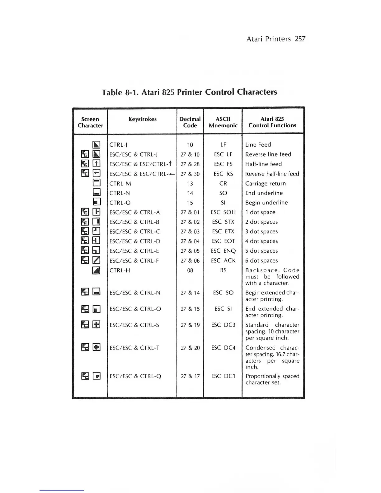 Decimal ASCII Atari 825