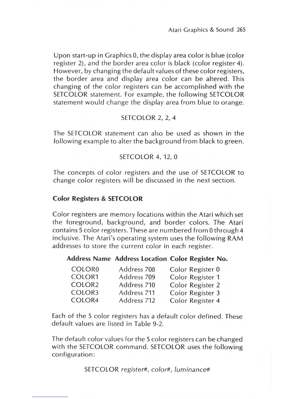 Color Registers & SETCOLOR