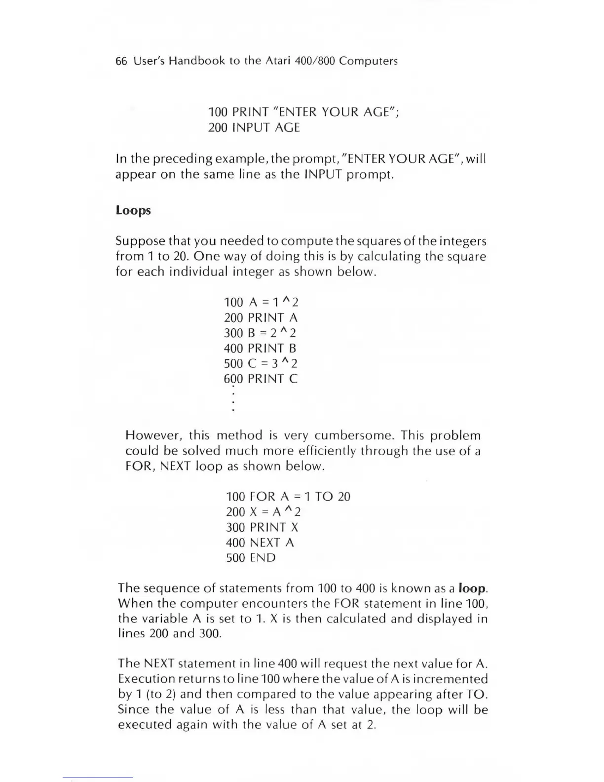 100 PRINT "ENTER YOUR AGE";