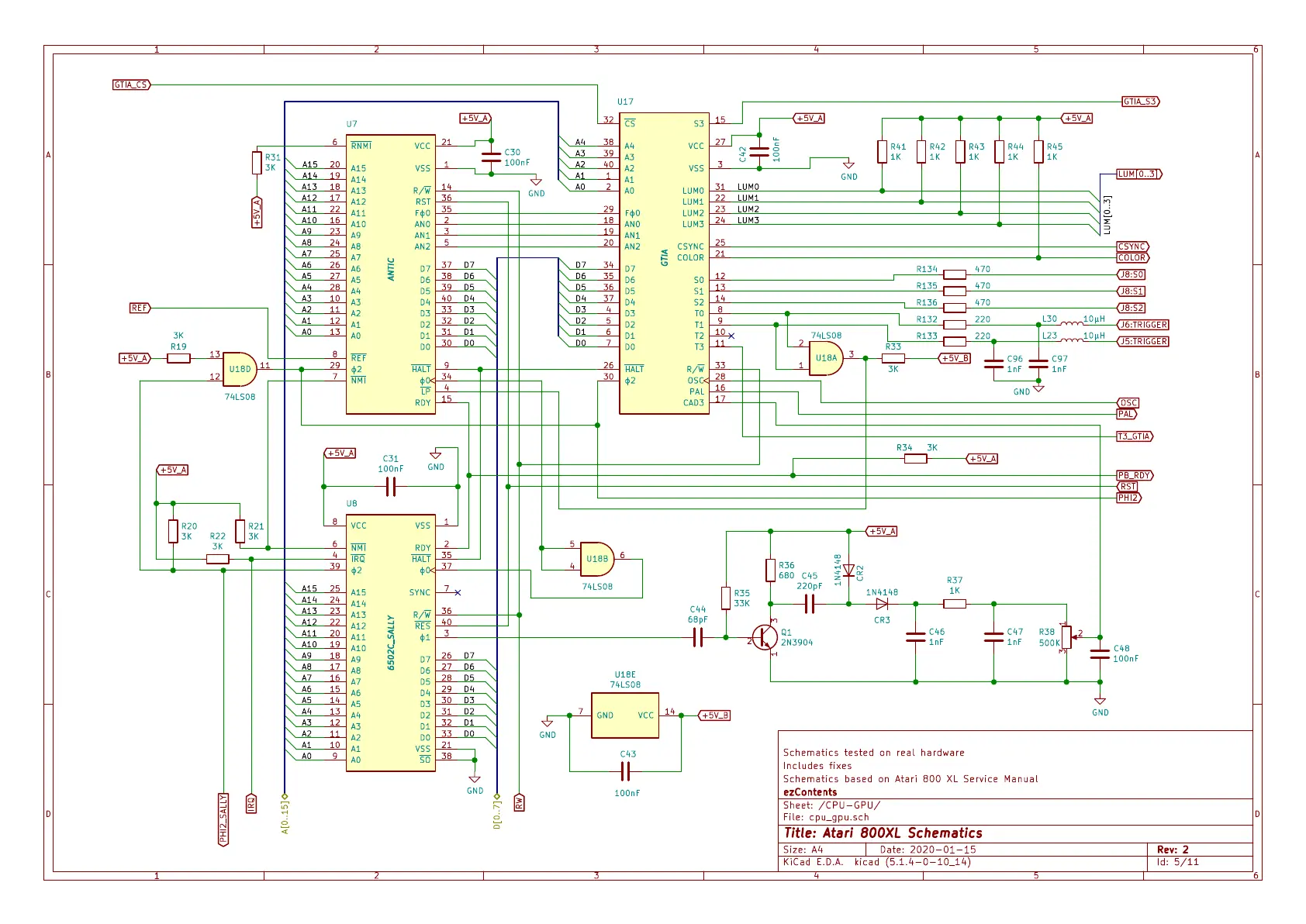 Schematics based on Atari 800 XL Service Manual