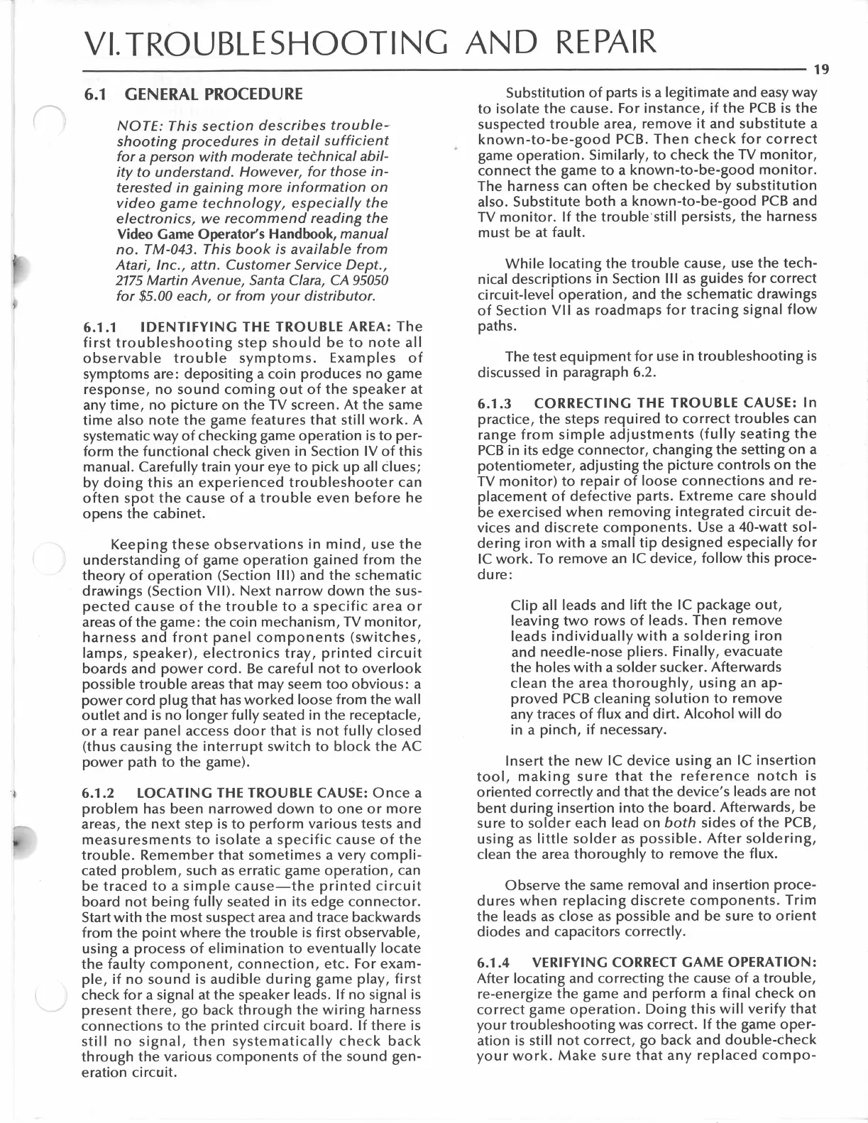 Atari Breakout - Troubleshooting and Repair; Identifying the Trouble Area; Locating the Trouble Cause; Correcting the Trouble Cause