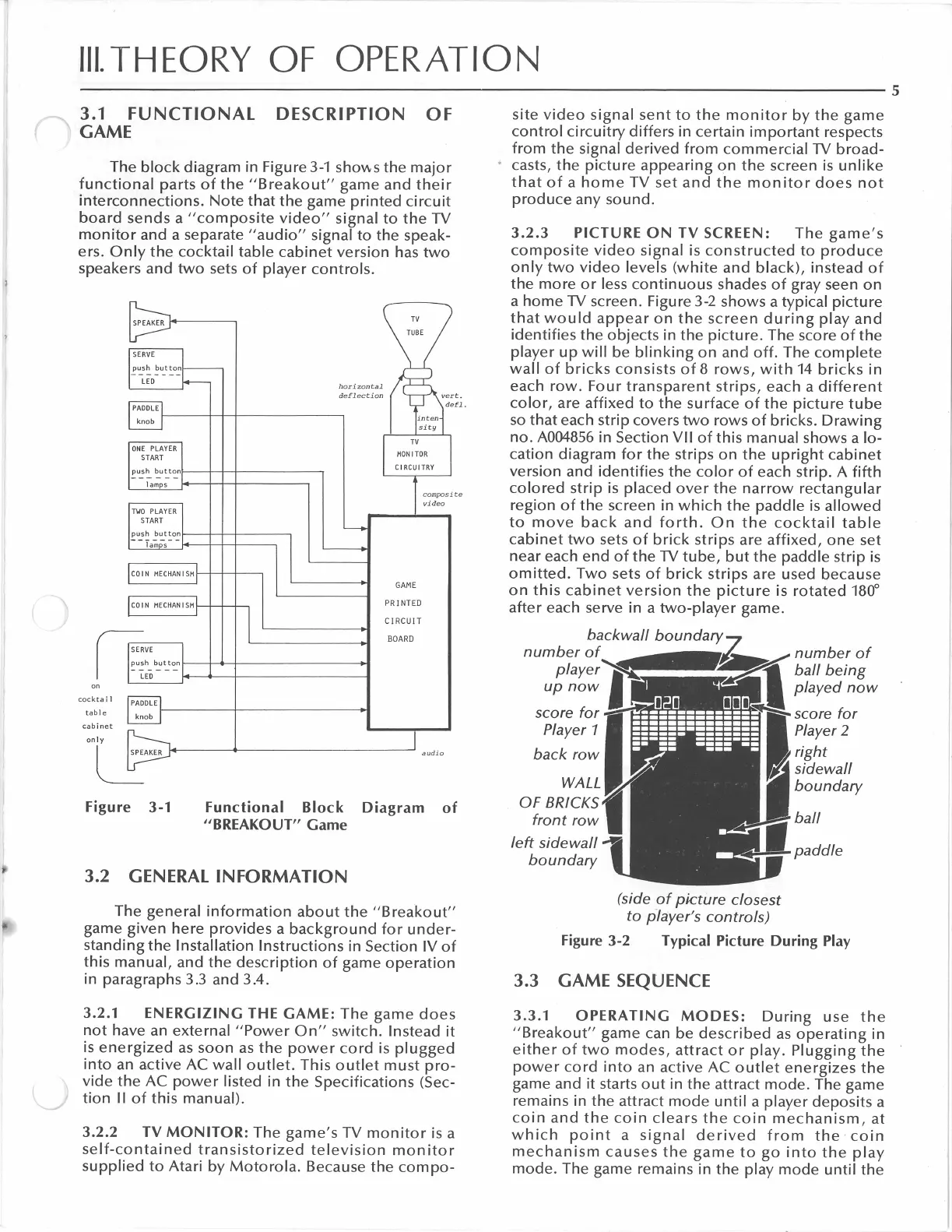 Atari Breakout - Theory of Operation; Functional Description of Game; Picture on TV Screen; General Information