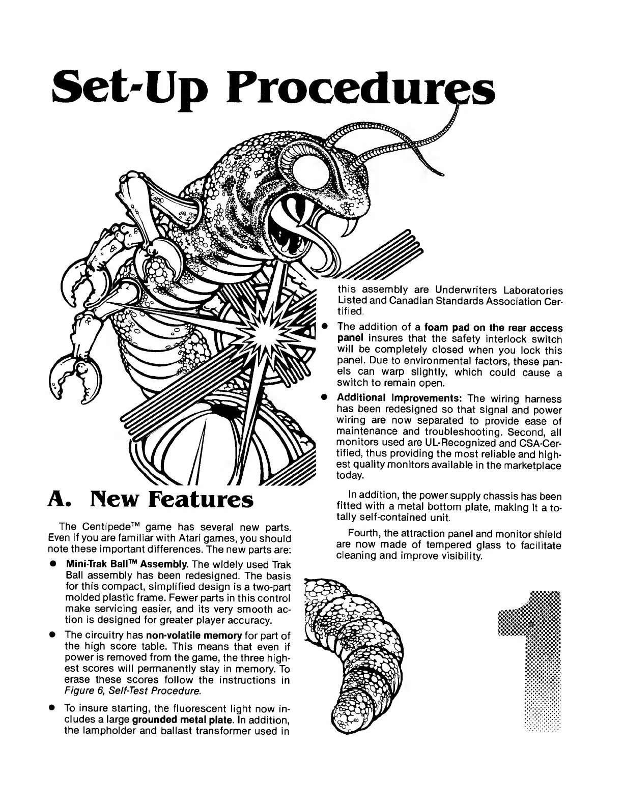 Atari Centipede - Set-Up Procedures; New Features