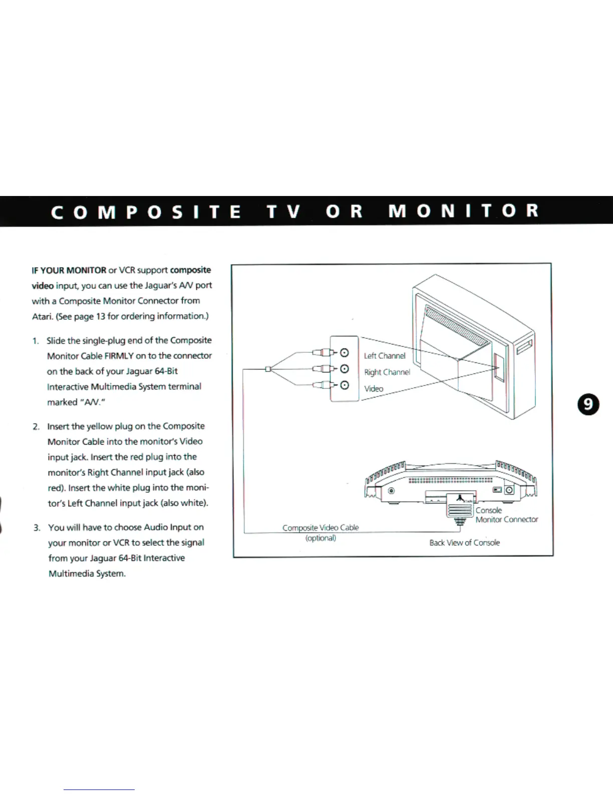 Atari Jaguar - Composite TV or Monitor; Composite Video Cable Connection