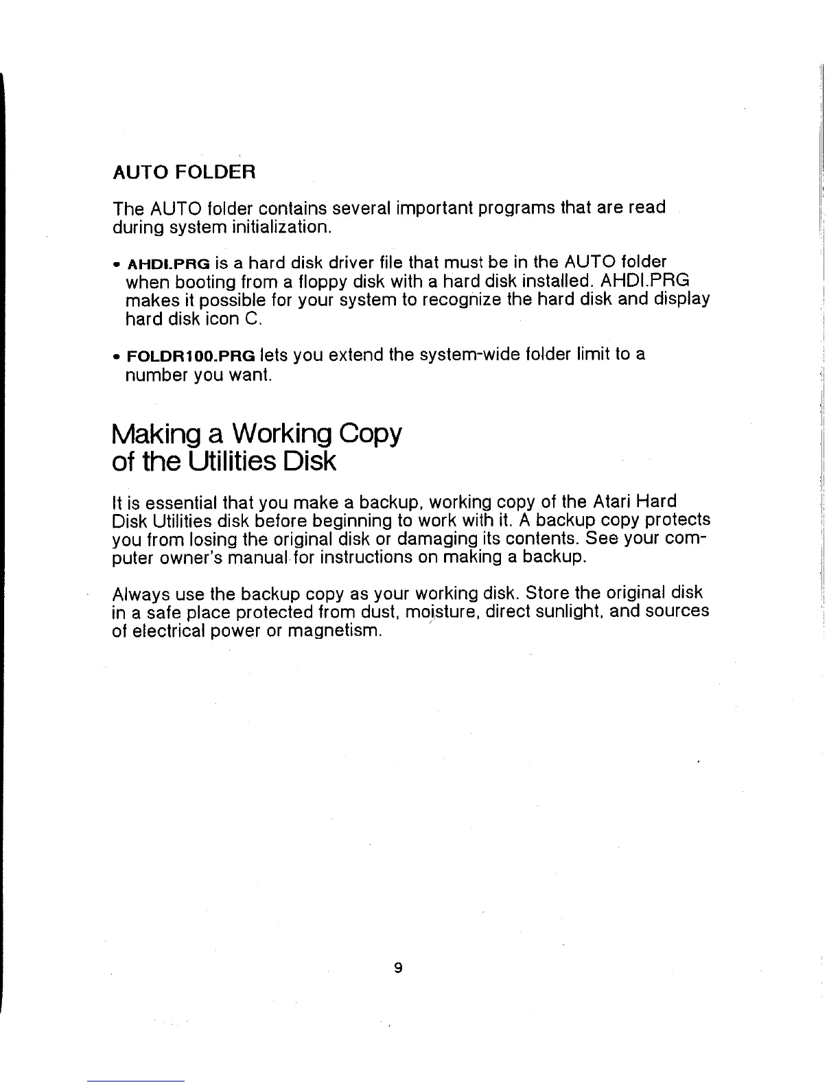 Atari Megafile - Auto Folder; Making a Working Copy of the Utilities Disk