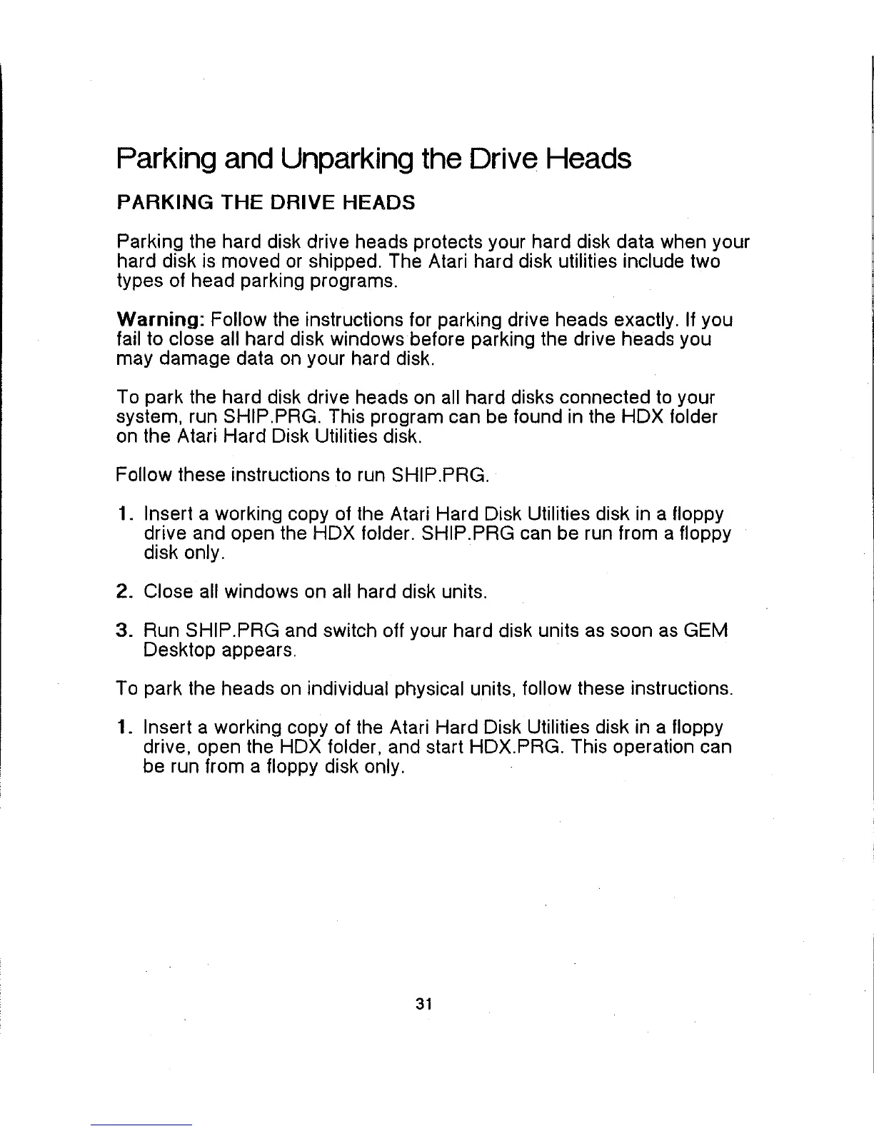 Atari Megafile - Parking the Drive Heads