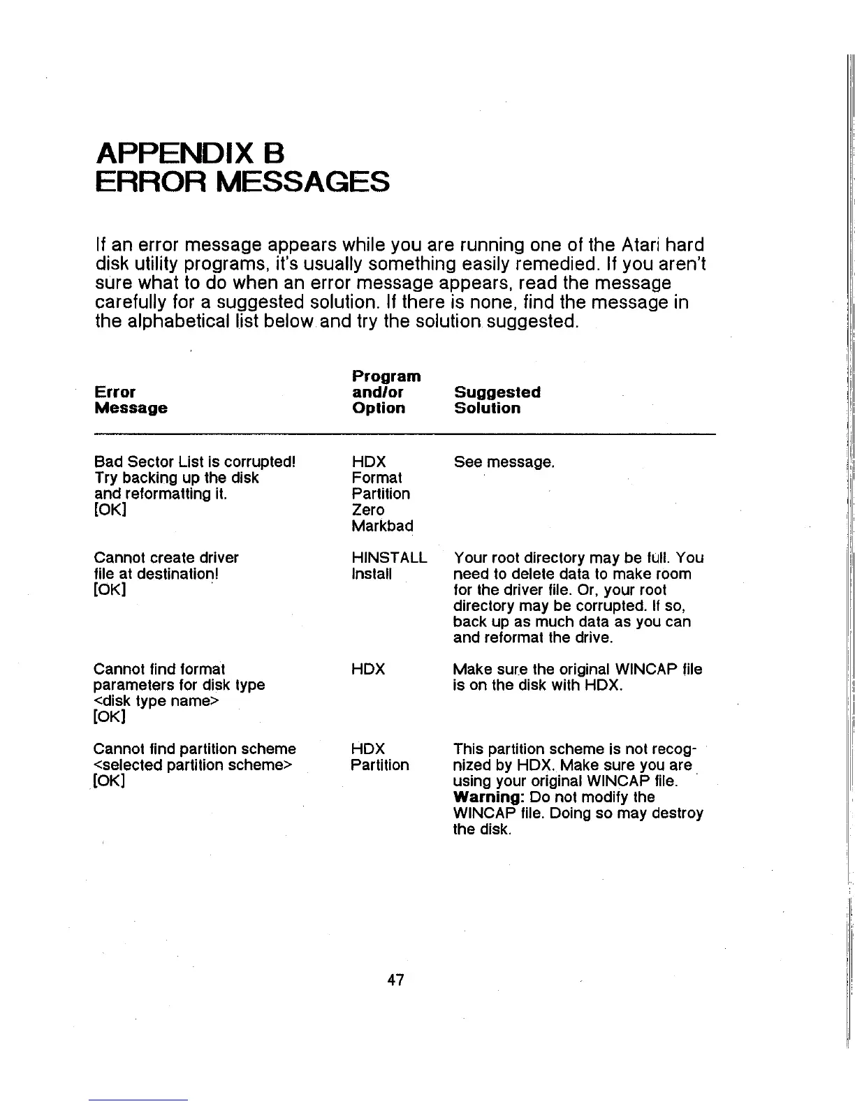 Atari Megafile - Error Messages