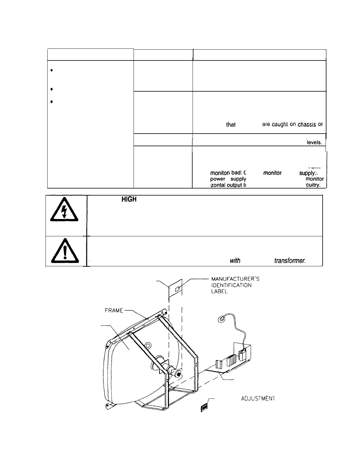voltage. During bench servicing, you may need to operate the monitor outside the