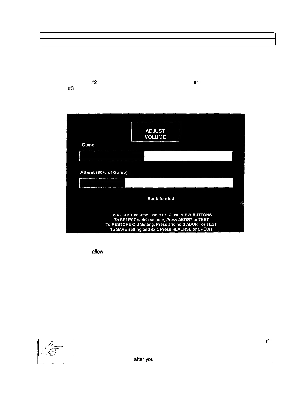 Game Volume or VIEW #2 for Attract Mode Volume. Press the VIEW