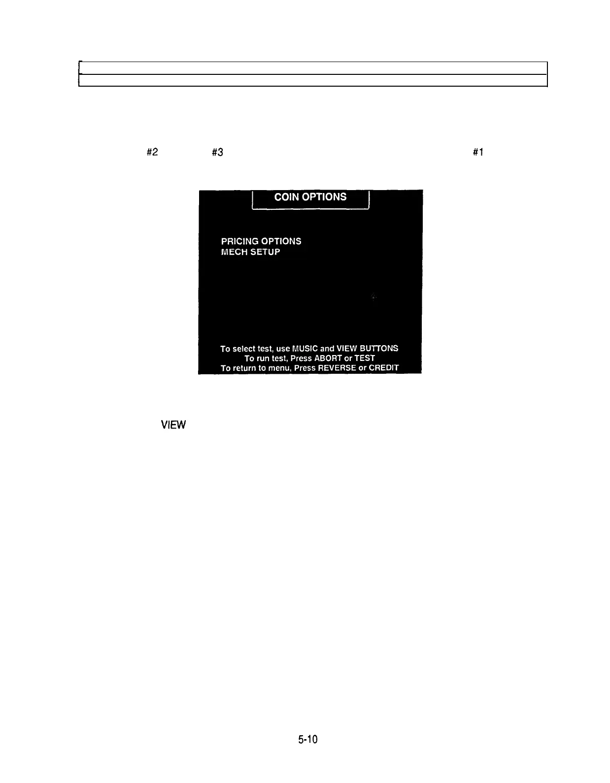 Select COIN OPTIONS at the Self-Test Menu. Use the Coin Options Menu to set up coin mechanisms