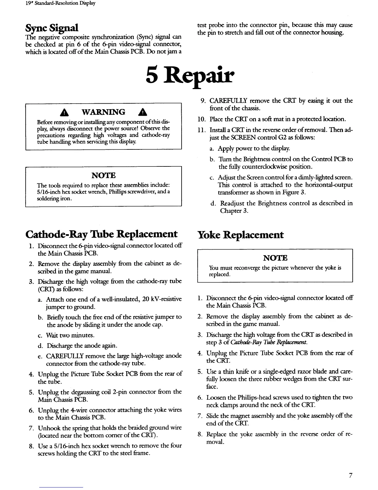 Atari Sharp XM-2001N - Repair; Sync Signal; Cathode-Ray Tube Replacement; Yoke Replacement