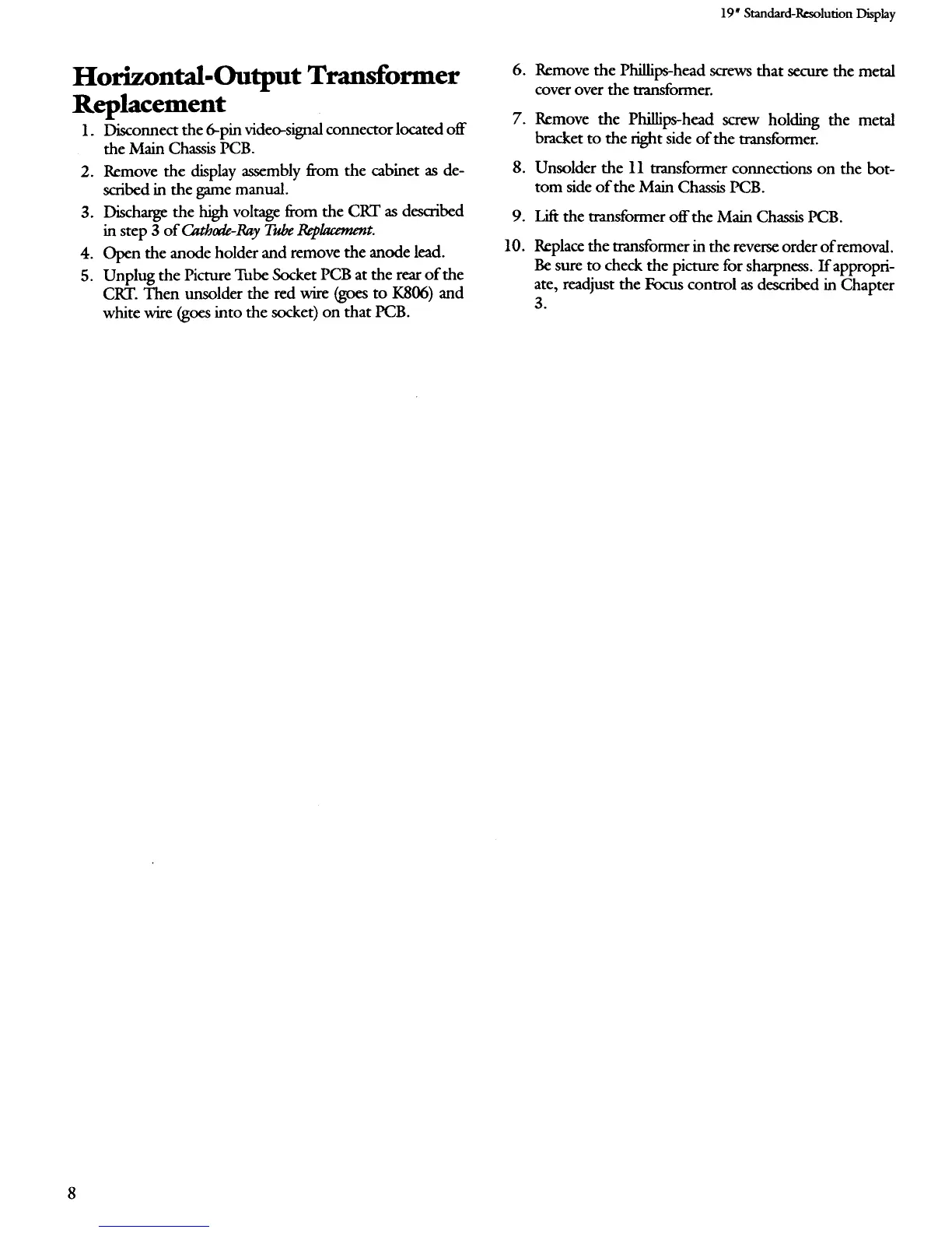 Atari Sharp XM-2001N - Horizontal-Output Transformer Replacement