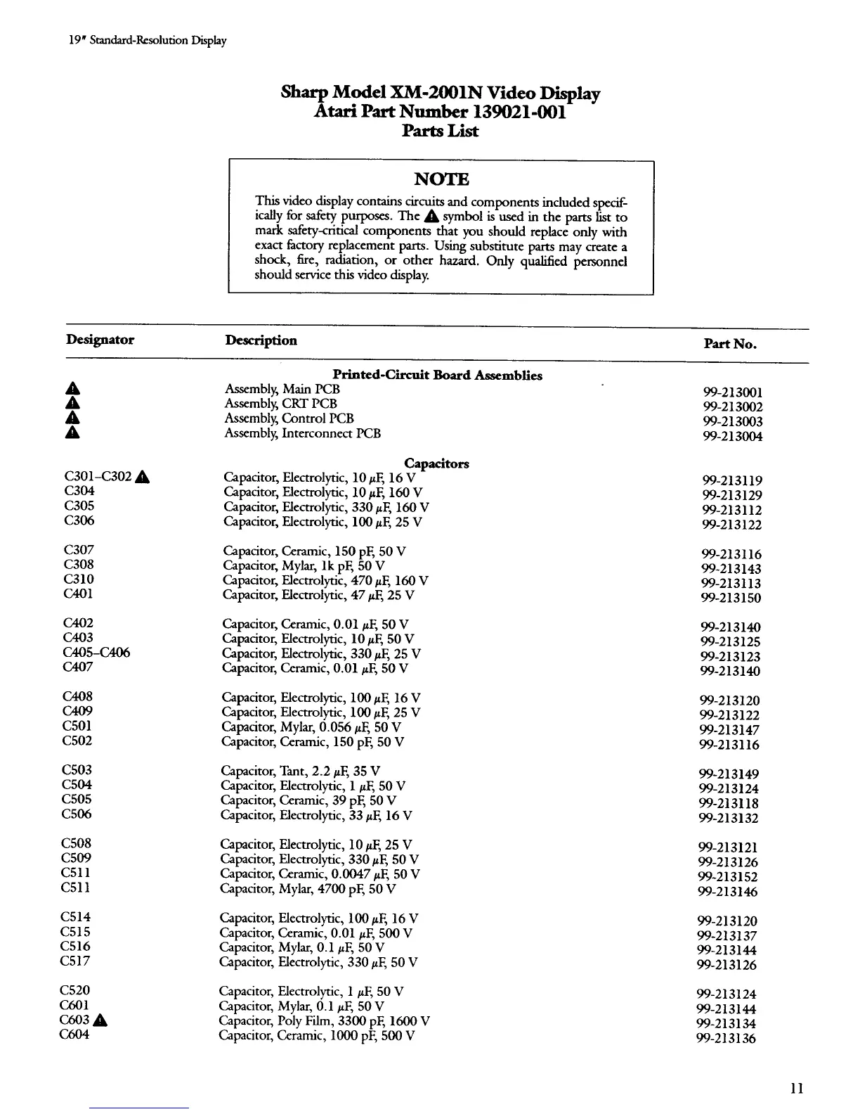 Atari Sharp XM-2001N - Parts List