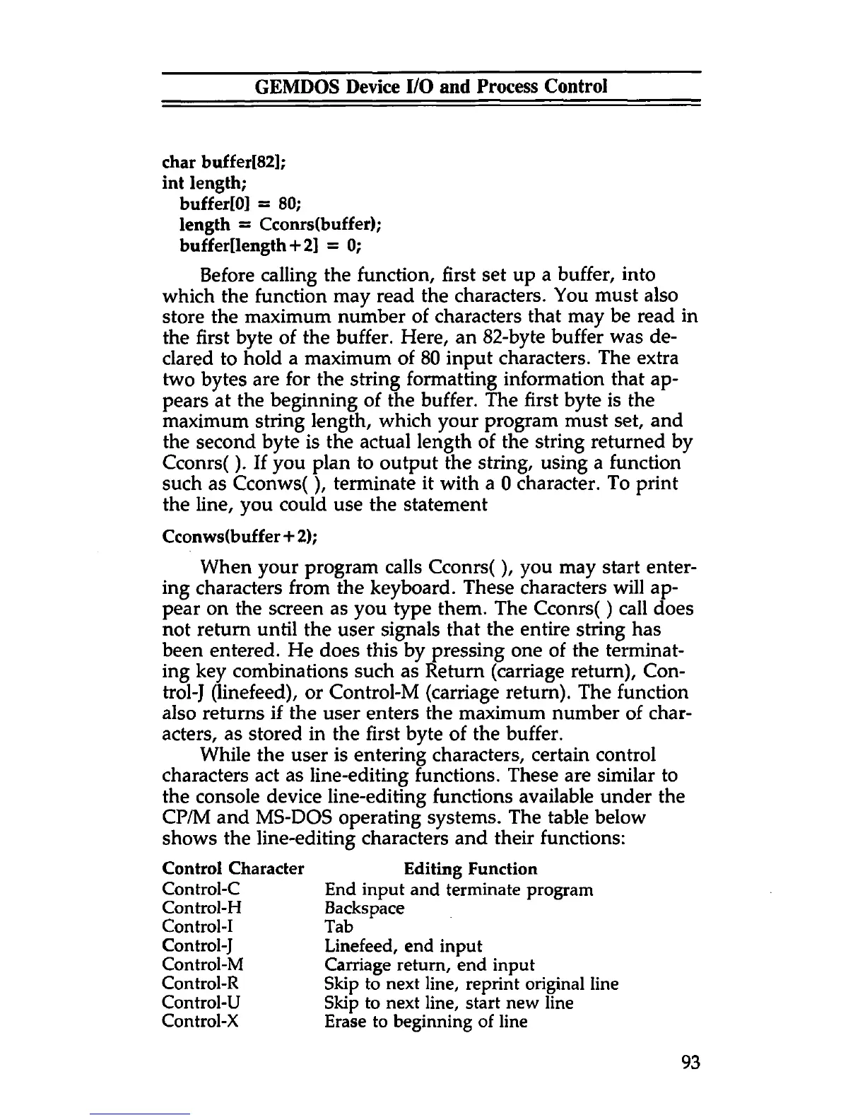 trol-J (linefeed), or Control-M (carriage return). The function
