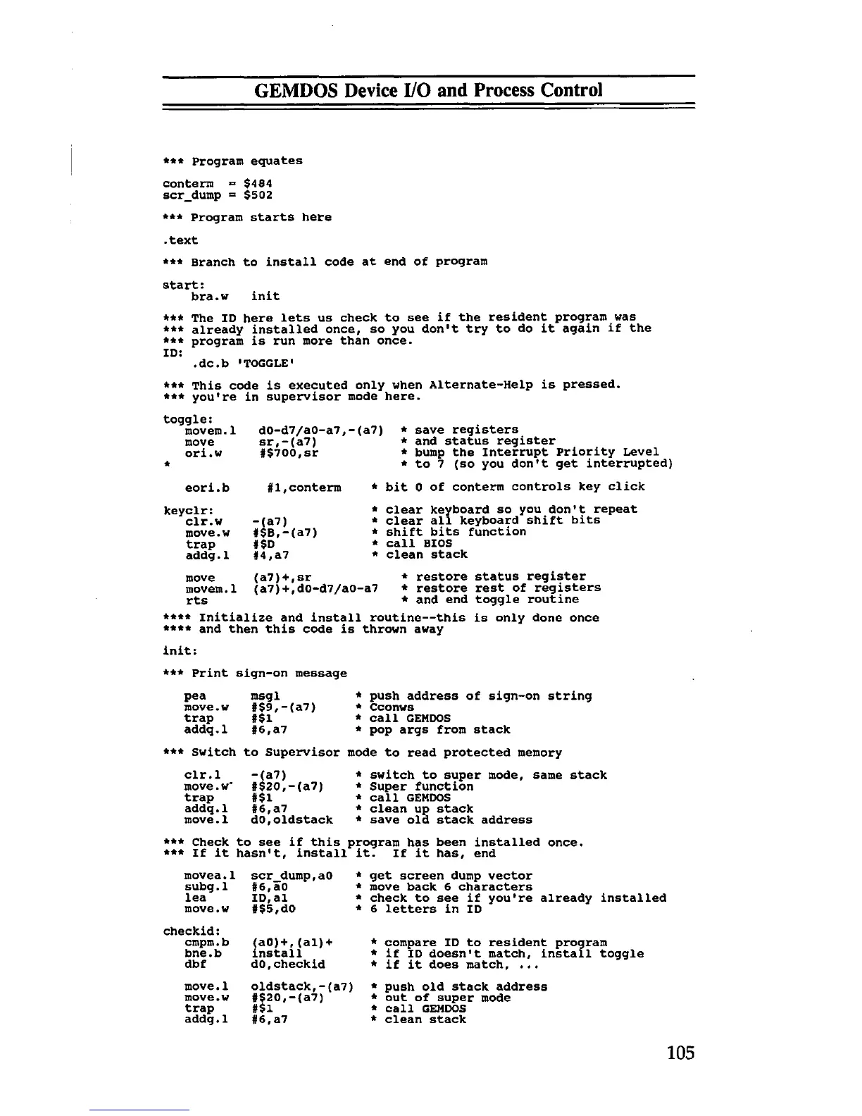 GEMDOS Device I/O and Process Control