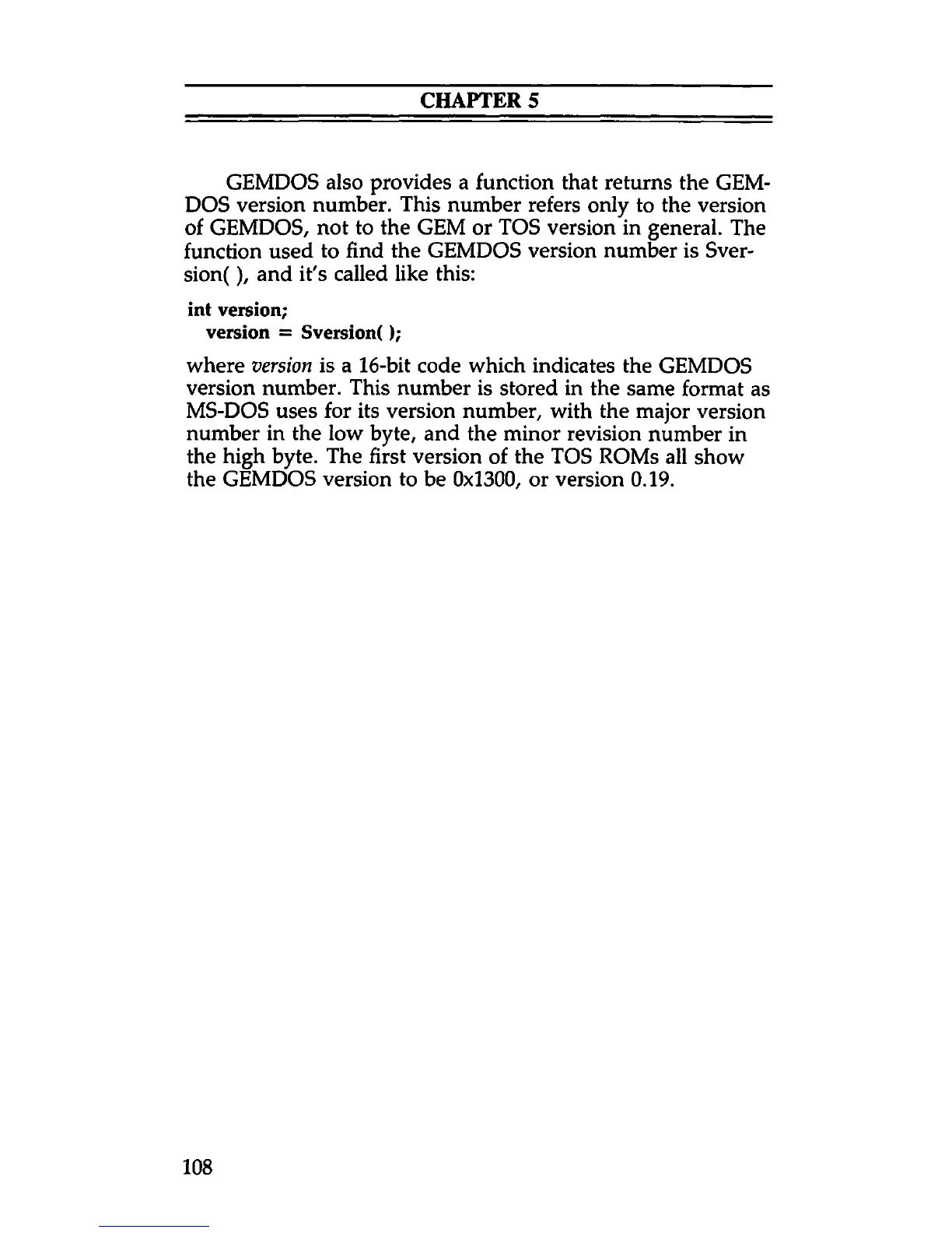 where version is a 16-bit code which indicates the GEMDOS