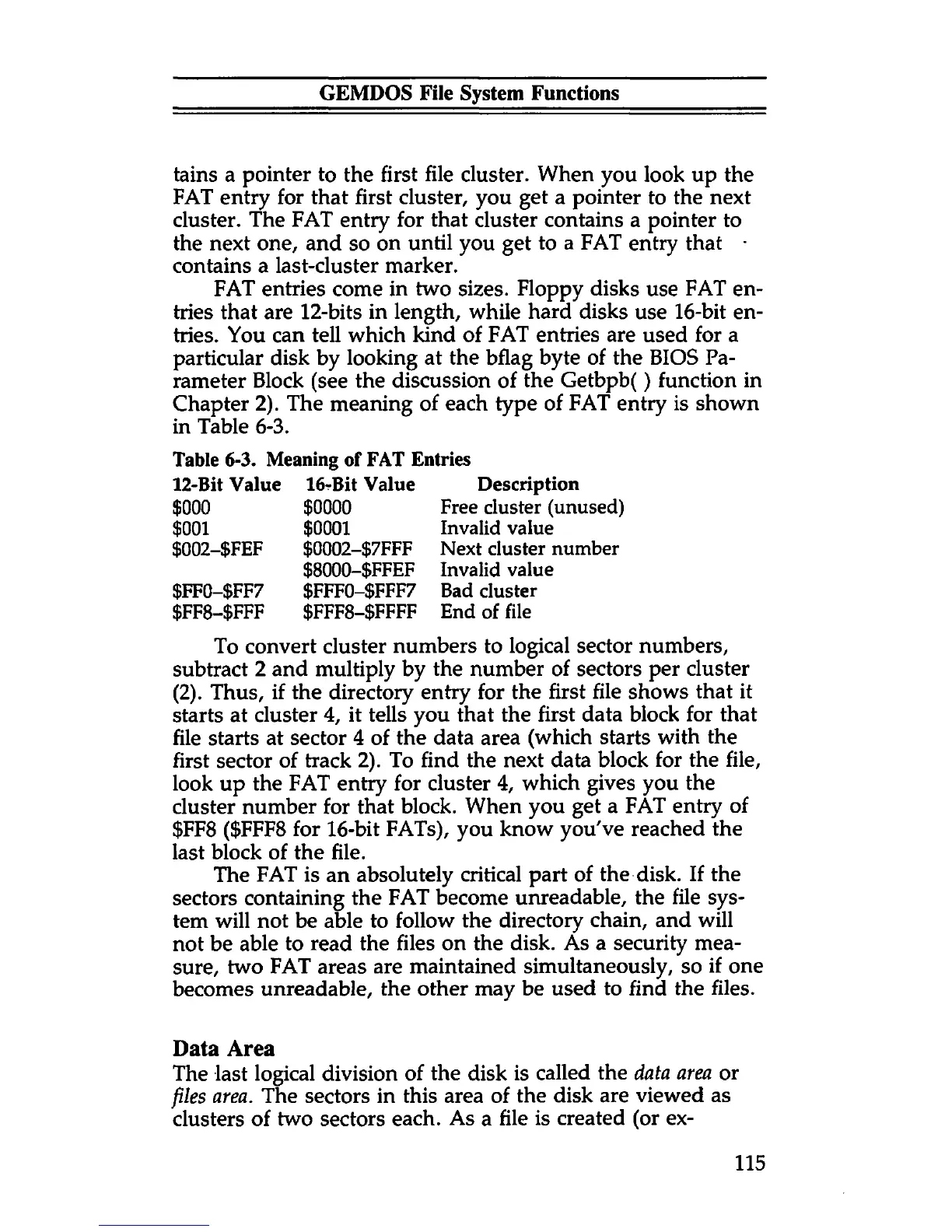 Chapter 2). The meaning of each type of FAT entry is shown