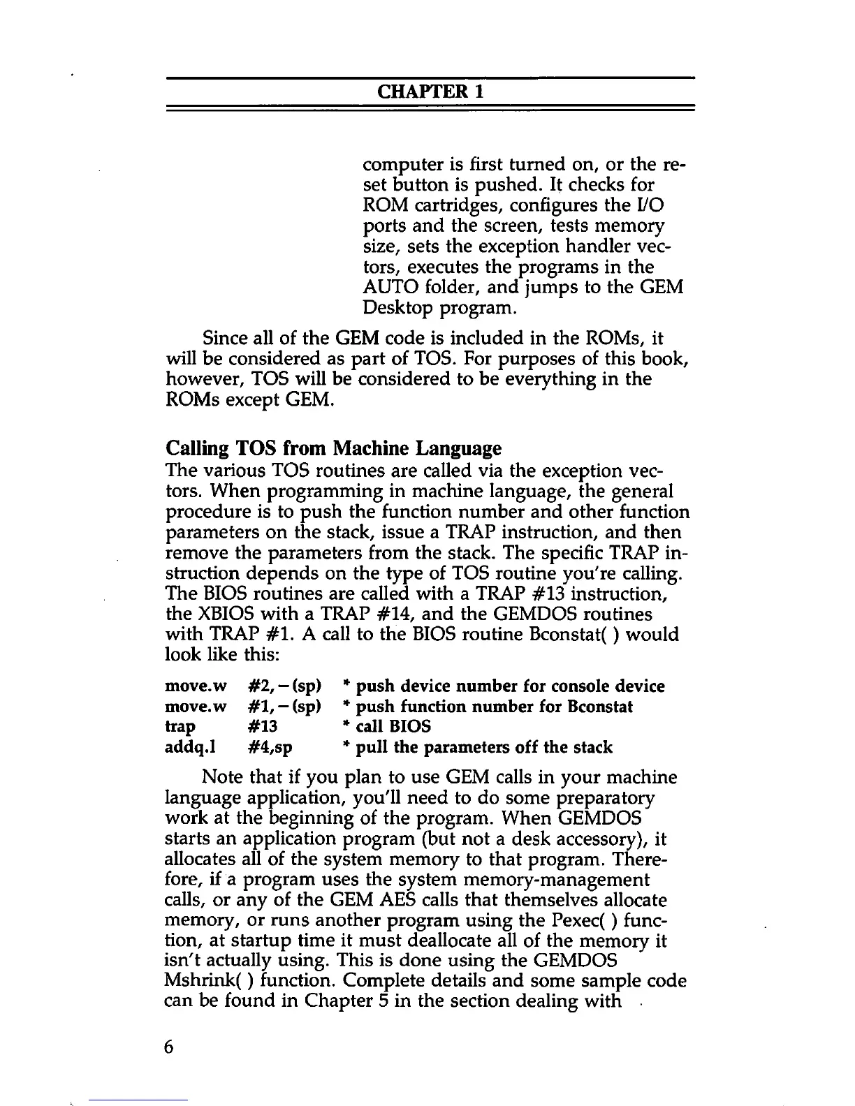 the XBIOS with a TRAP #14, and the GEMDOS routines