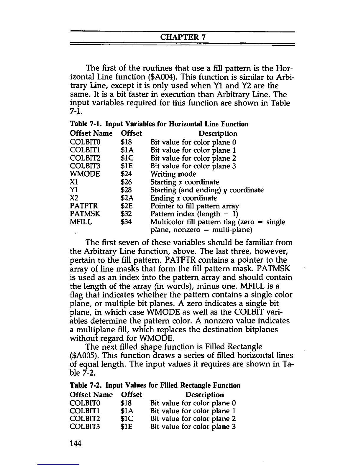 pertain to the fill pattern. PATPTR contains a pointer to the