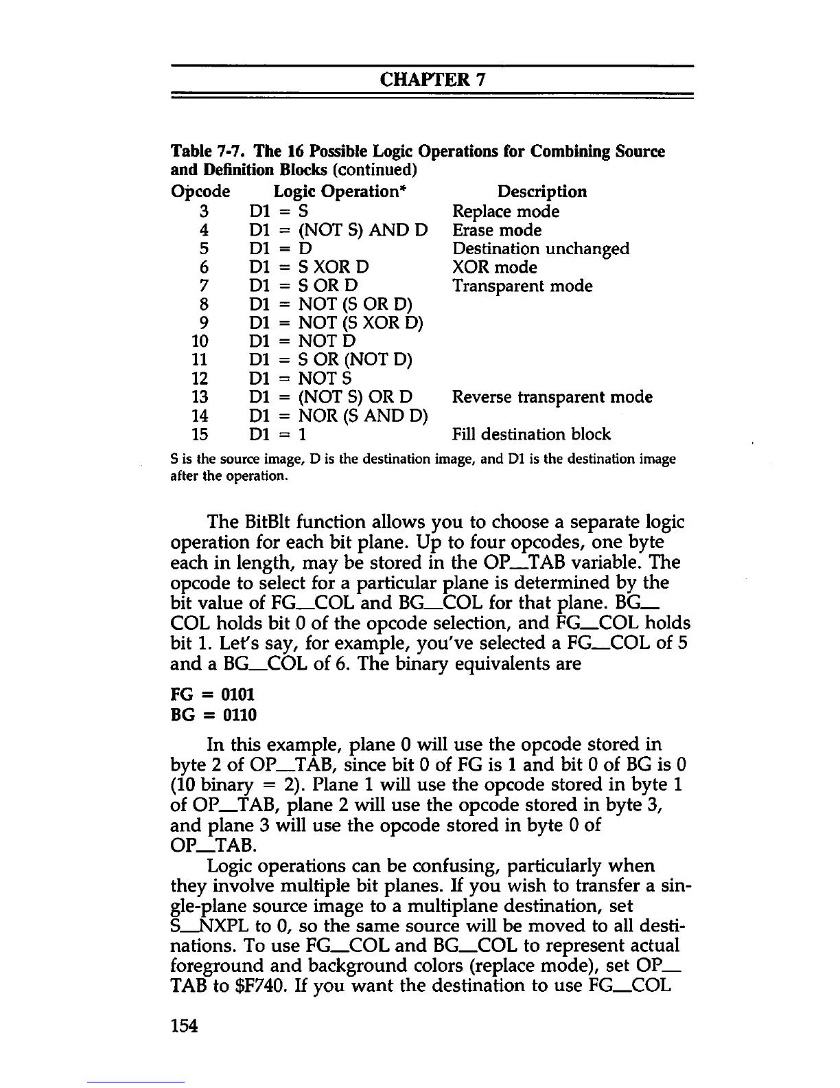 Table 7-7. The 16 Possible Logic Operations for Combining Source