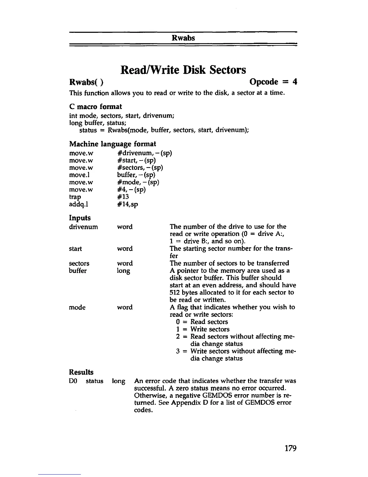 sta tu s = R w a b s(m od e, b uffer, se cto rs , sta rt, d riv en u m );