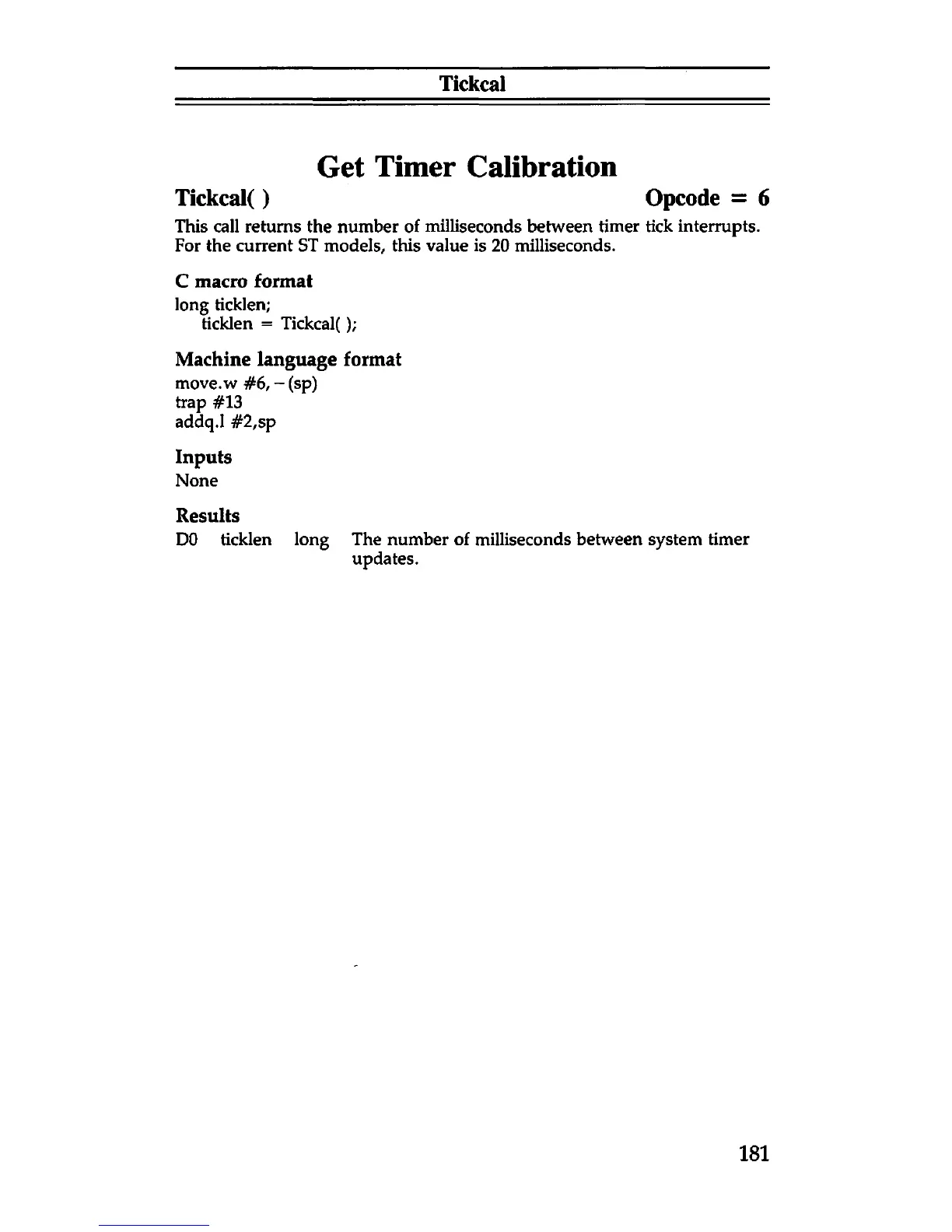 Tickcal() Opcode = 6