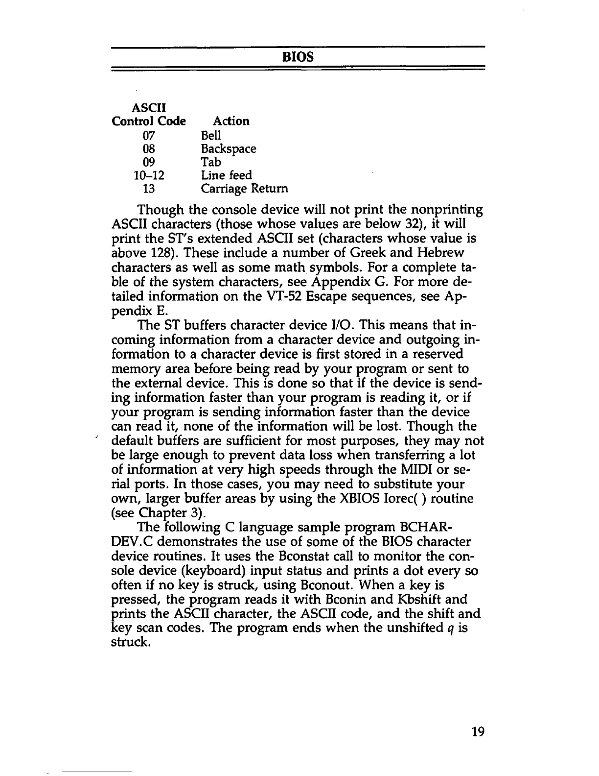 DEV.C demonstrates the use of some of the BIOS character
