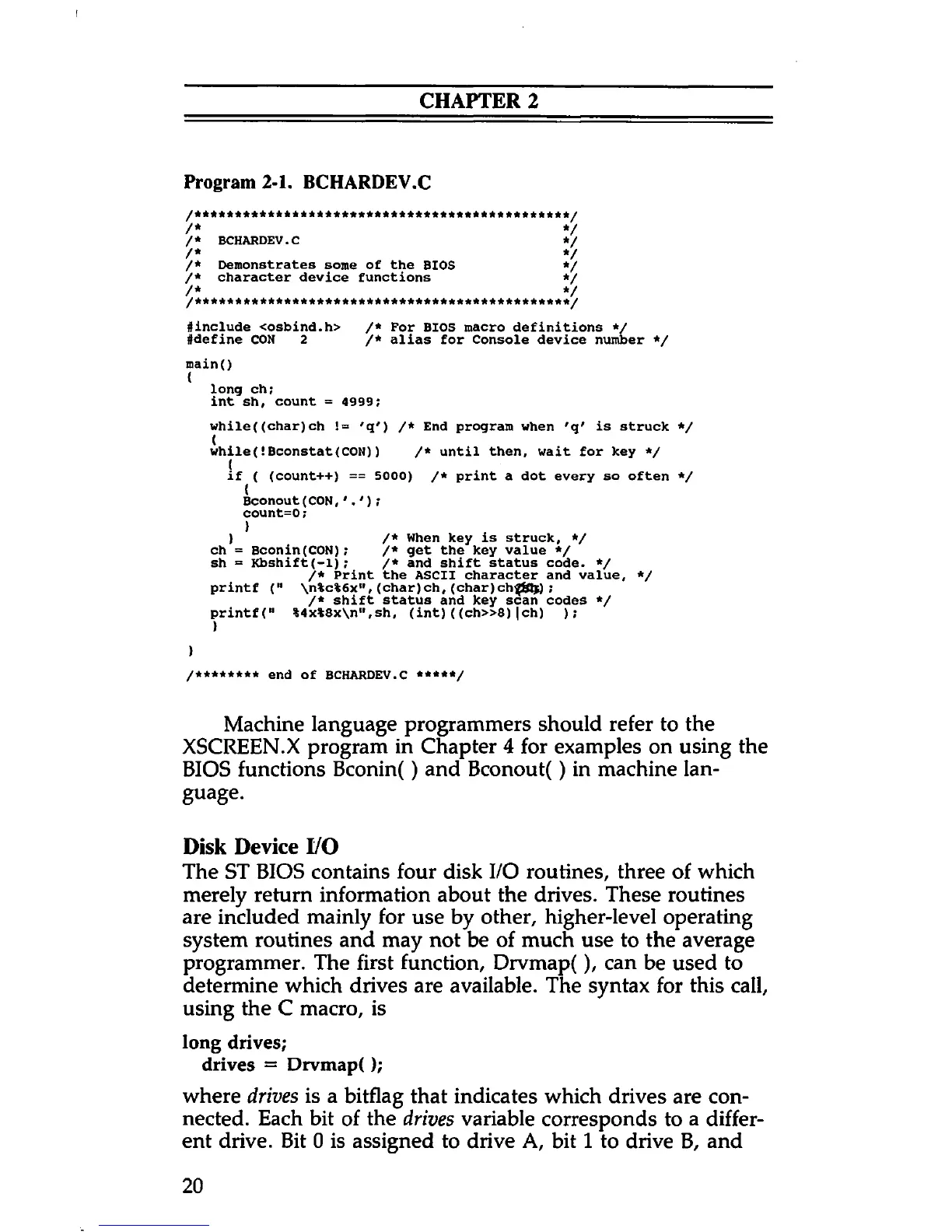 Program 2-1. BCHARDEV.C