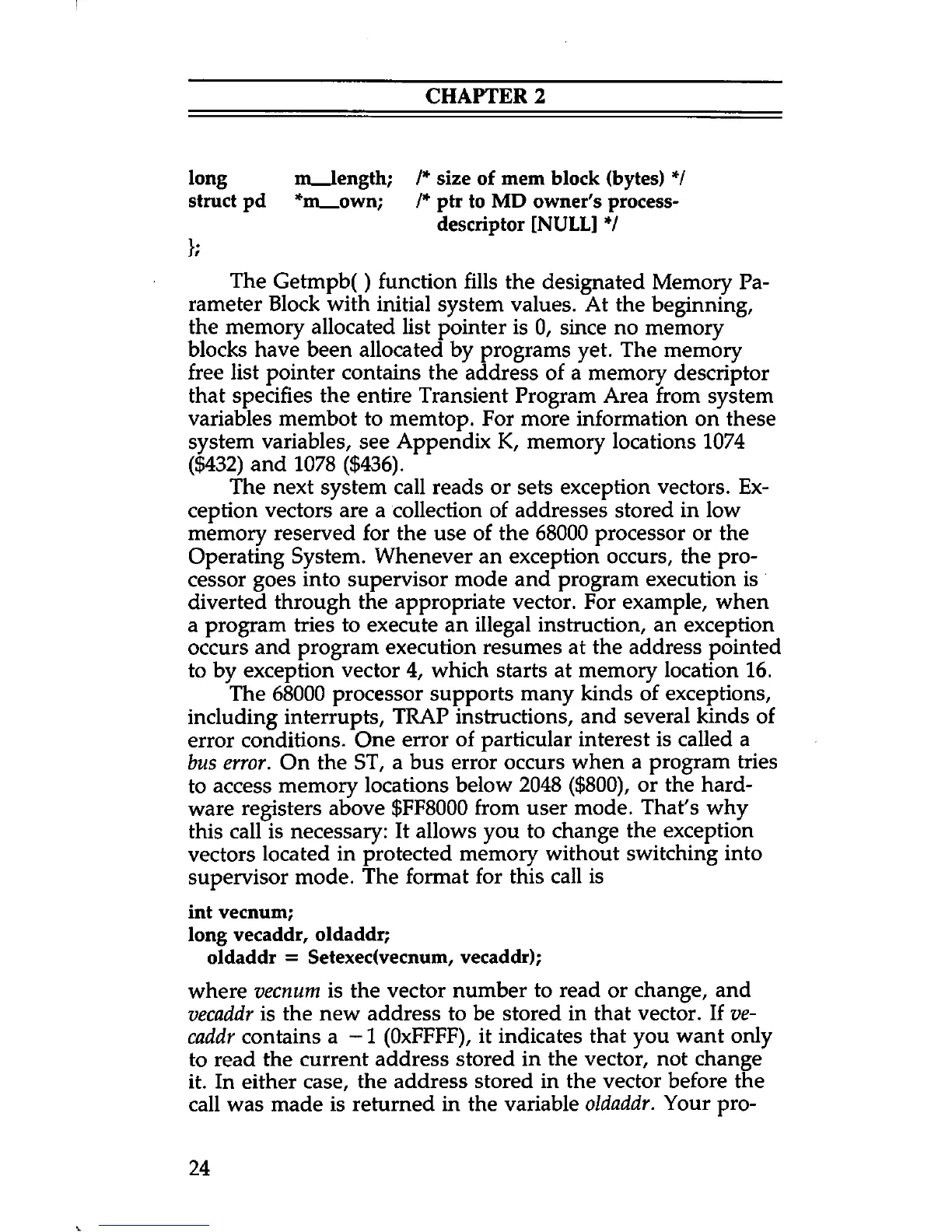 bus error. On the ST, a bus error occurs when a program tries