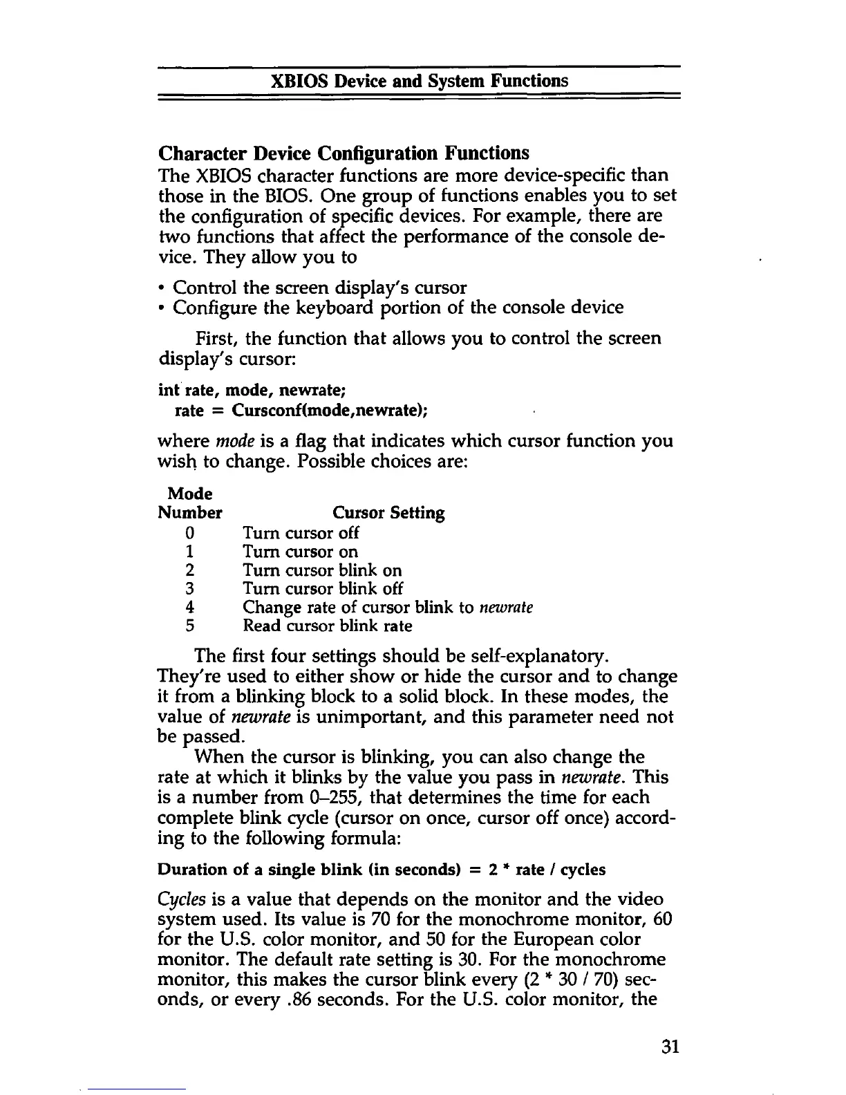 monitor, this makes the cursor blink every (2 * 30 / 70) sec