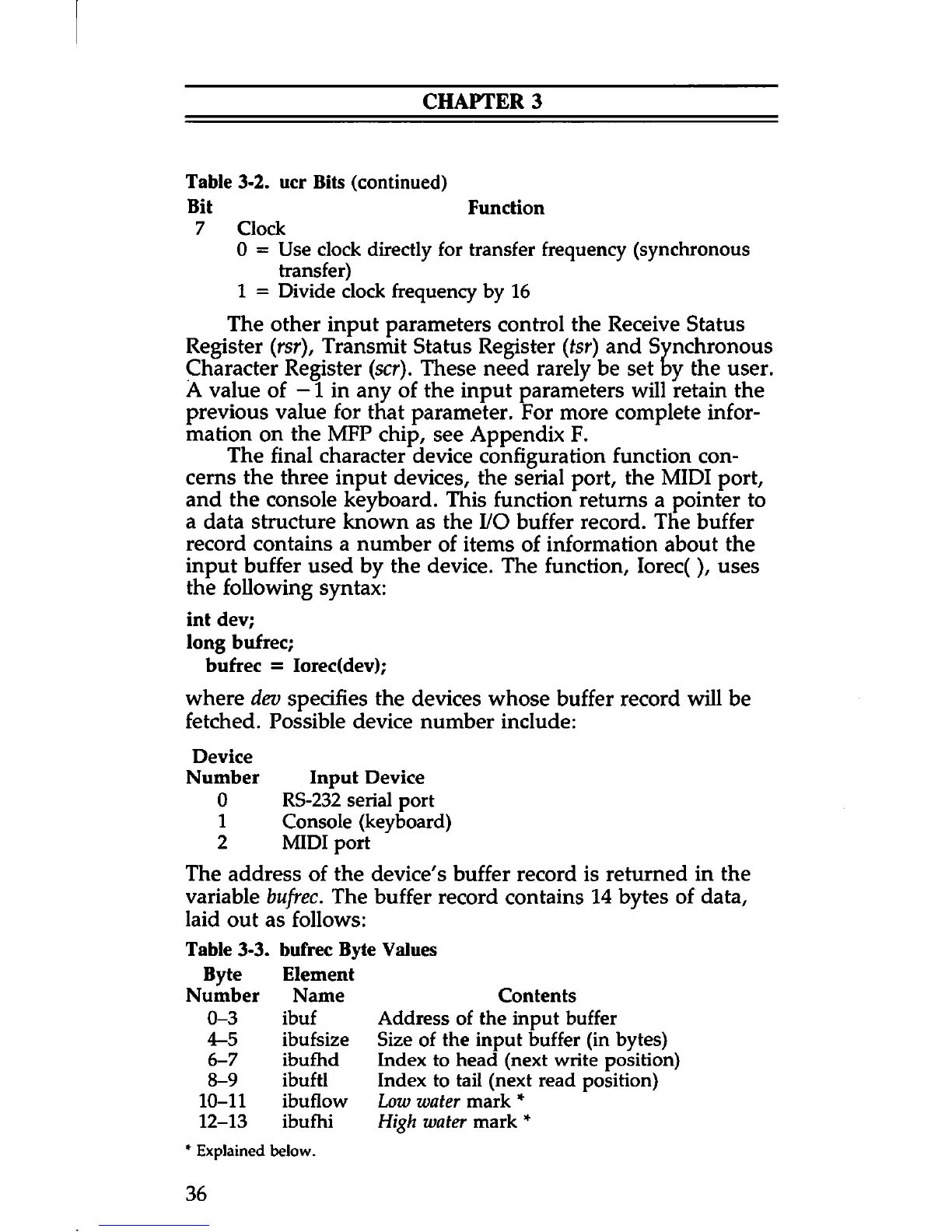 input buffer used by the device. The function, Iorec(), uses