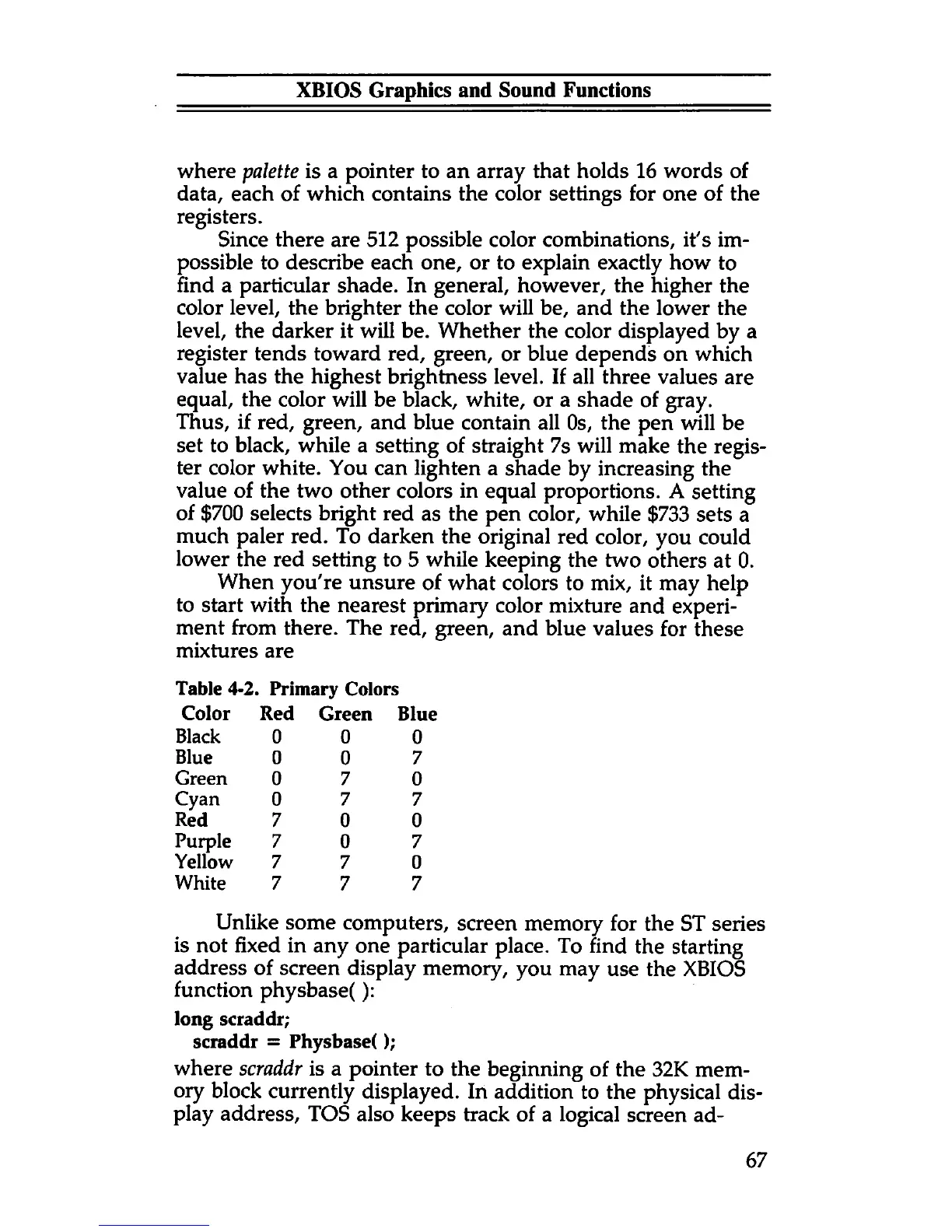 address of screen display memory, you may use the XBIOS