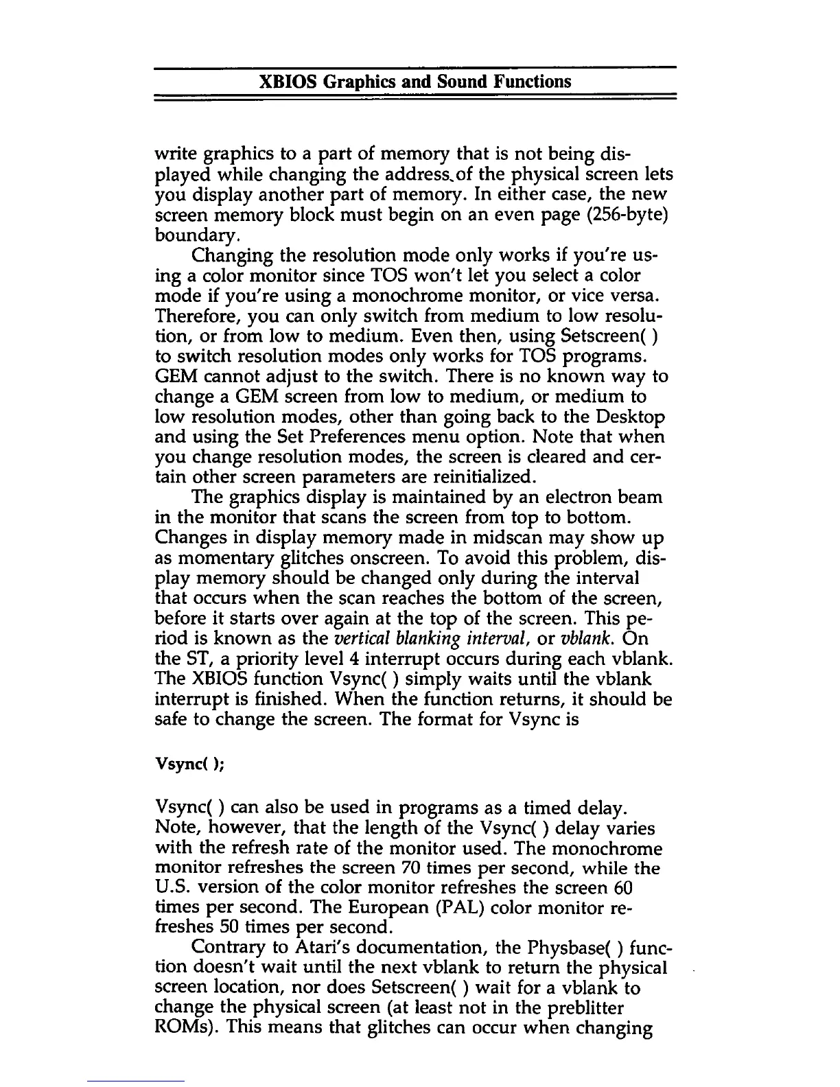 screen location, nor does Setscreen() wait for a vblank to