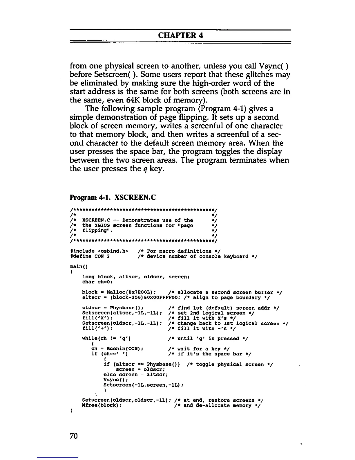 Program 4-1. XSCREEN.C