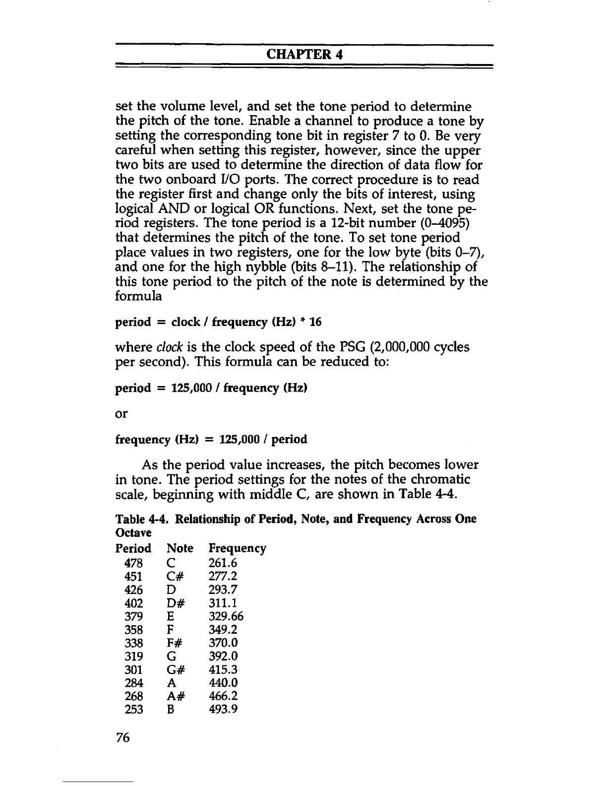 Table 4-4. Relationship of Period, Note, and Frequency Across One