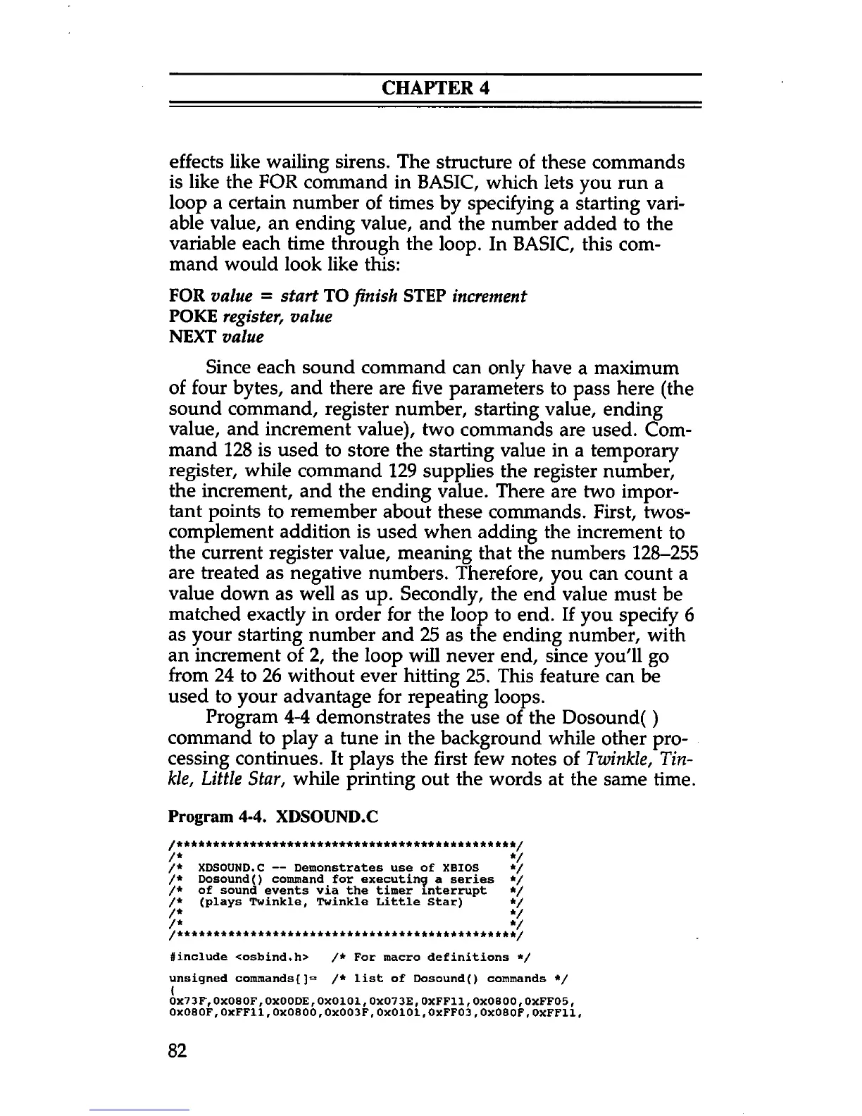 /* XDSOUND.C — Demonstrates use of XBIOS */