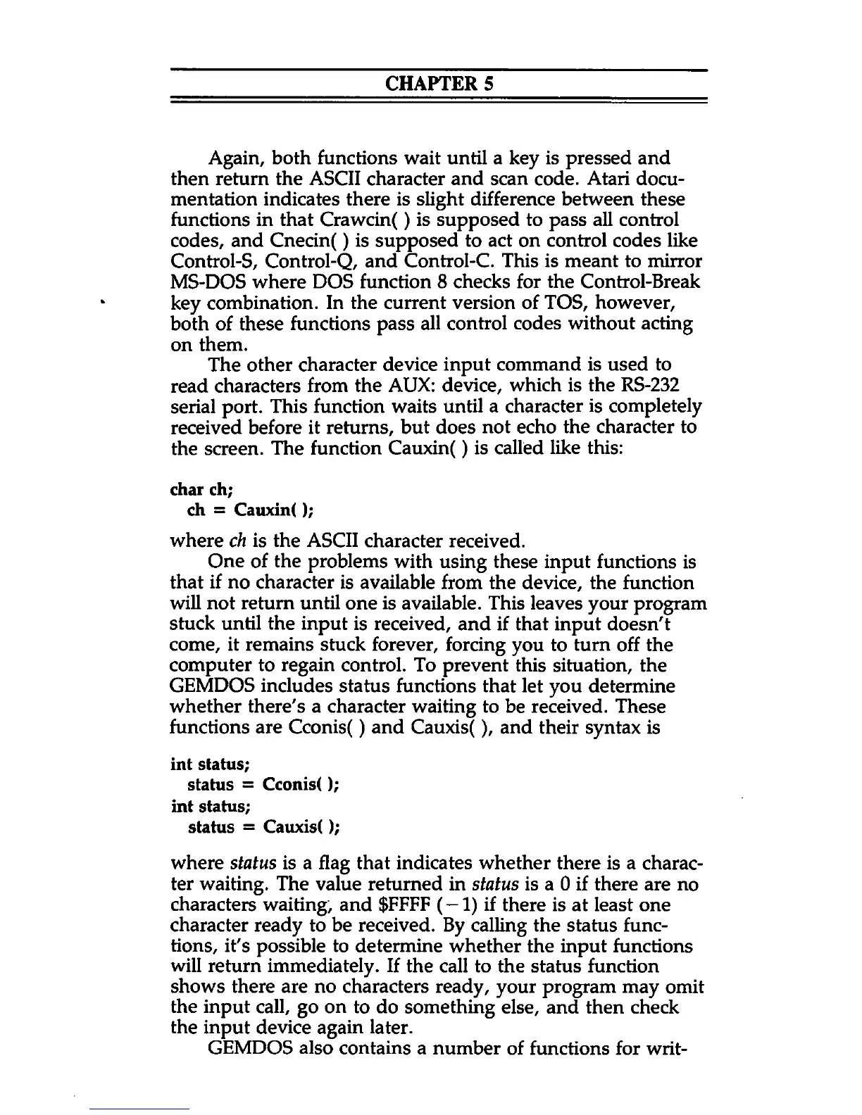 GEMDOS also contains a number of functions for writ-
