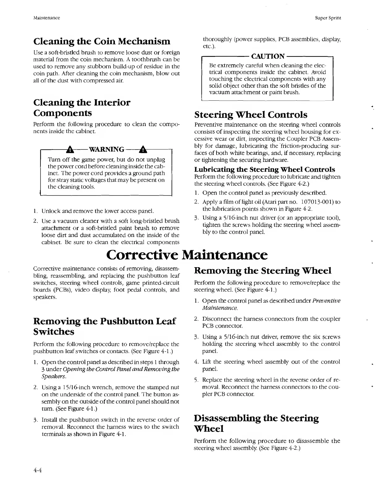 Atari SUPER SPRINT - Cleaning the Coin Mechanism; Cleaning the Interior Components; Steering Wheel Controls; Lubricating the Steering Wheel Controls
