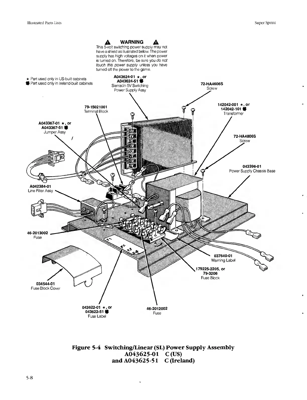 Atari SUPER SPRINT - Figure 5-4 Switching;Linear (SL) Power Supply Assembly