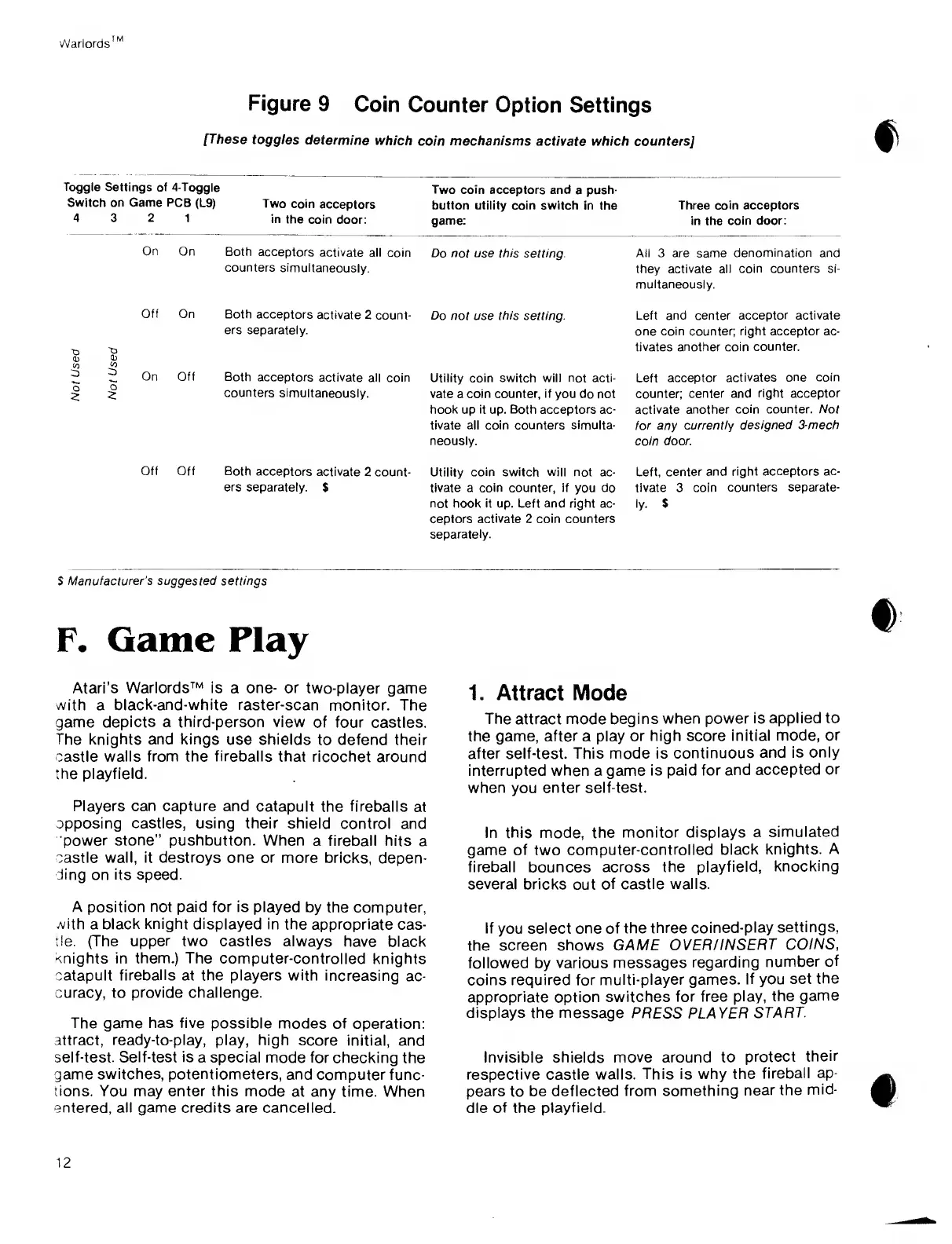 entered, all game credits are cancelled.