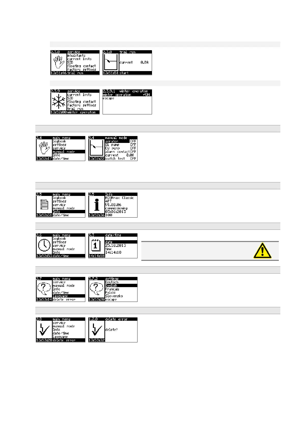 In the manual mode the individual units can be commissioned