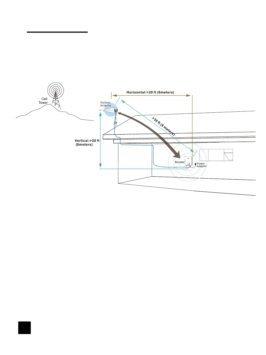 20 feet (6 meters) vertical from the booster with built-in indoor antenna for