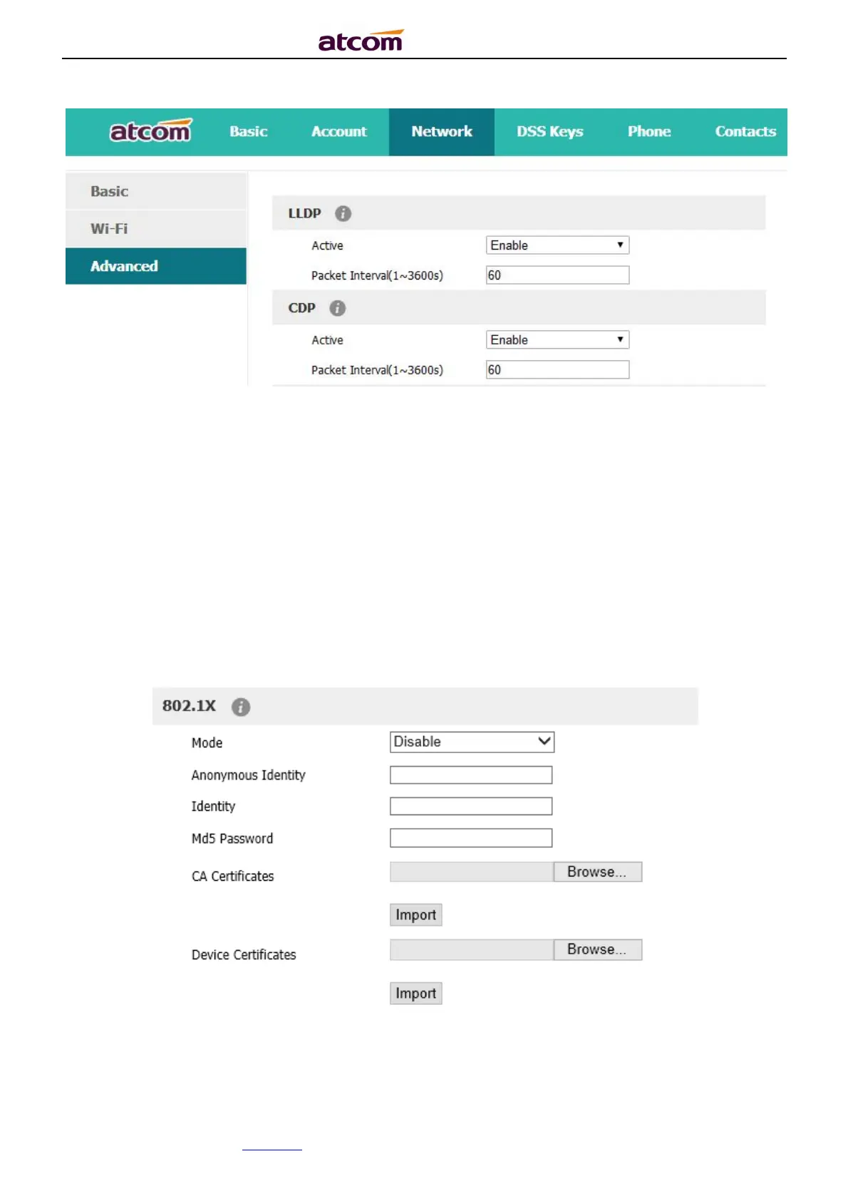 Set the 802.1X via the webpage: Network →Advanced→802.1X