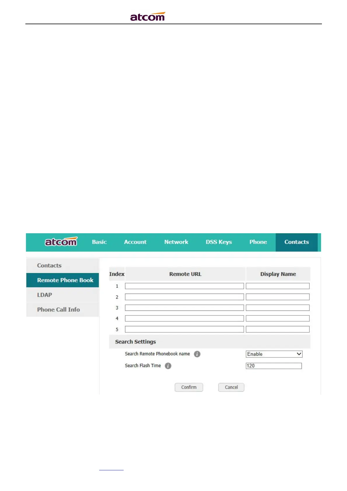 1. Remote URL: Set a remote phonebook download path. Support the TFTP,FTP,HTTP and