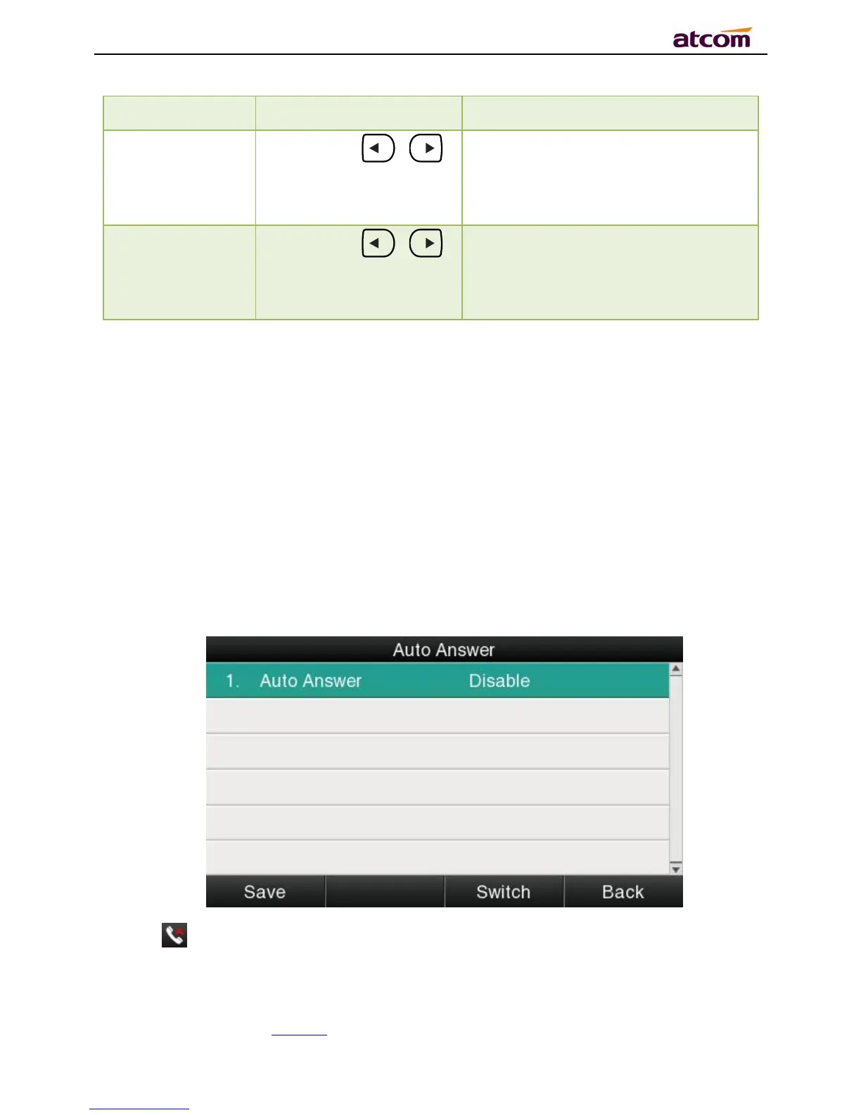 automatically when the phone is standby once “Auto Answer” is activated. “Auto Answer”when